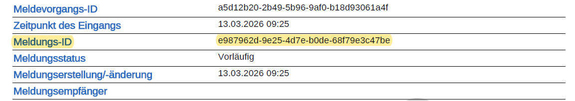 - jedoch mit Pflichtangabe der initialen Meldungs-ID
