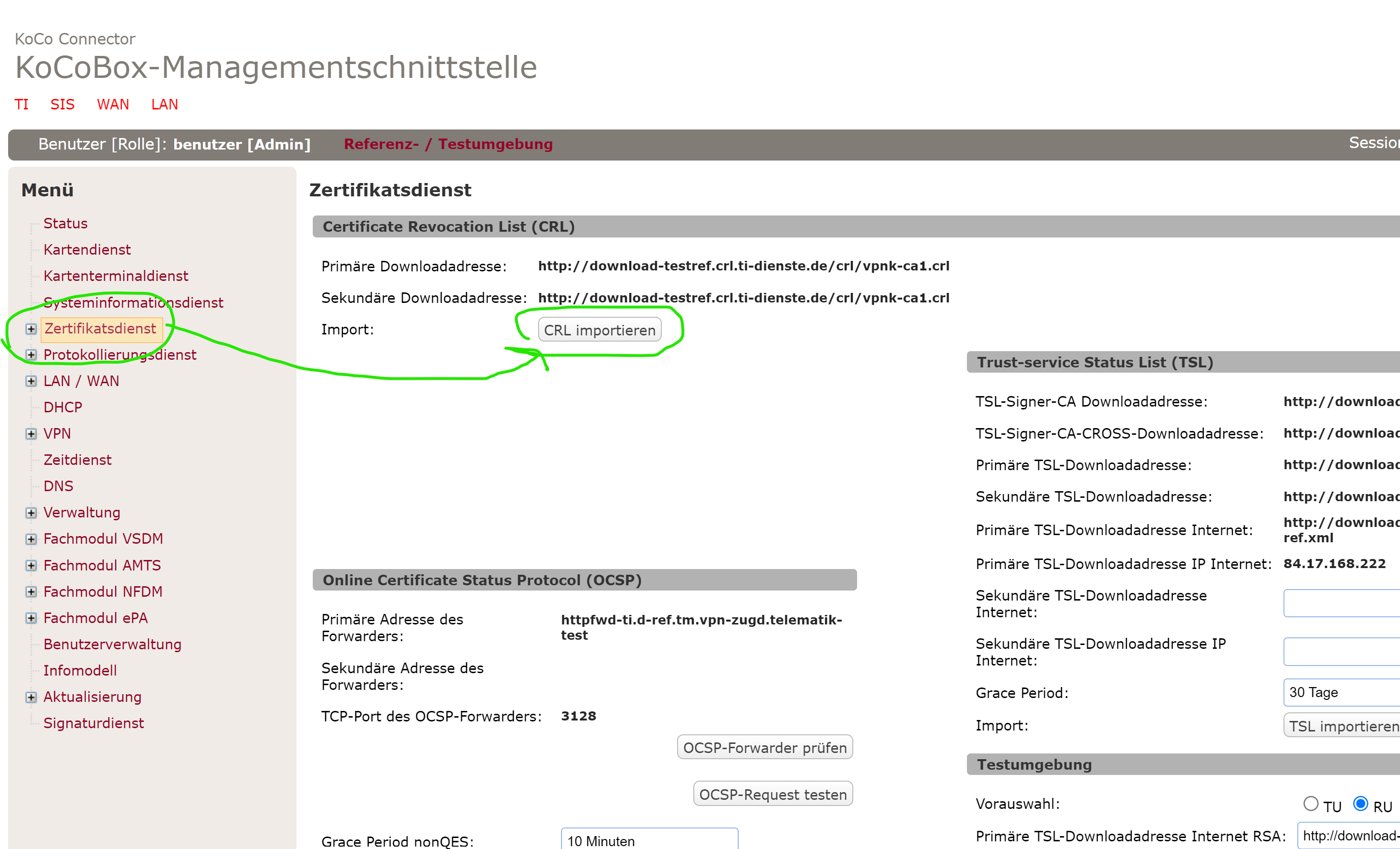 | 25 | Konnektor | Update der TSL schlägt fehl | TSL kann nicht heruntergeladen werden, Downlaod nicht erfolgreich,... Verwendeter Downlaodpunkt ist: ... | Es wird noch mit der RSA-TSL (also ohne ECC) gearbeitet. Dieser Downloadpunkt ist für die Testwoche deaktiviert.